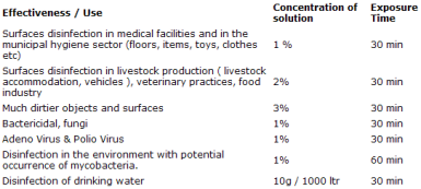 Although Chloramine-T is a chlorine compound, it attacks the peptide bonding of the proteins when the complete active substance molecule comes into contact with micro-organisms (virus, bacteria, fungus or yeast), in addition to having the effect of conventional chloride disinfectants, which continually split off chlorine.