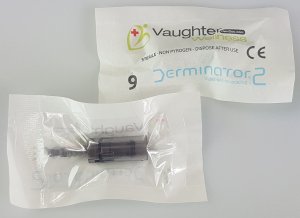 Derminator® 2 digital dermaneedling cartridge (9-needles). Needle diameter 0.15 mm. (38 SWG, 34½ AWG). Ethylene Oxide-sterilized. The needles are made of surgical steel and do not contain nickel. 100 years sterility is possible when that does not happen.