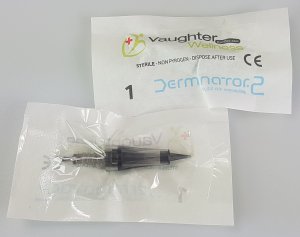 Derminator® 2 digital dermaneedling cartridge (single needle). Needle diameter 0.15 mm. (38 SWG, 34½ AWG). Ethylene Oxide-sterilized. The needles are made of surgical steel and do not contain nickel. 100 years sterility is possible when that does not happen.