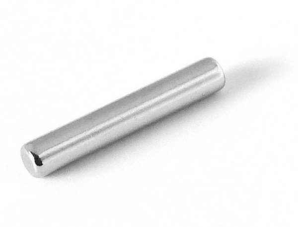 20 mm long, 6 mm diameter Neodymium magnet. N48SH, Nickel-plated with black PTFE ("Teflon") coating to protect the Nickel plating against chipping and moisture and to reduce friction.